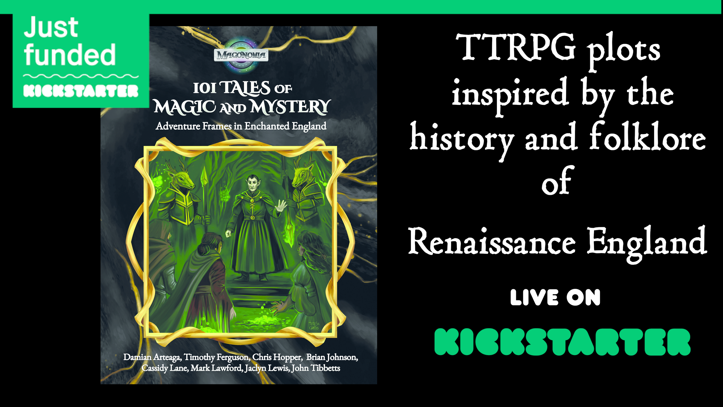 Enrich your TTRPG campaign with this treasury of adventure plots rooted in a fantasy version of 16th-century England. The Good Neighbors (faeries) live under the hills, ruled by King Oberon and Queen Titania. Ghosts haunt the moors and castles. Courtiers vie for royal favor while foreign spies plot the downfall of the Tudor dynasty.